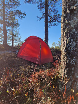 Vi bråbestemte oss torsdag for at vi ville ut på tur igjen, så da var det bare å hive seg rundt og pakke sekken. Nå begynner dessverre "nettene å bli lange" (men kulda har ikke satt helt inn), ergo det blir tidlig mørkt, så det er begrenset hvor langt vi får gått når vi drar ut etter jobb. Vi foretrekker å kunne slå opp telt med litt dagslys, det er både enklere og koseligere.