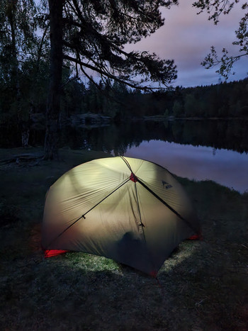 Sist gang jeg sov i telt ved Hvalsdammen var på skoletur i 7.klasse i 1988! Jeg tror det må ha vokst igjen mye siden da, for jeg kan ikke skjønne hvordan vi skal ha fått plass til så mange telt der den gangen. Vel vel, jeg fant meg da i hvertfall et fint sted å slå opp teltet. Dette ligger jo ikke akkurat utenfor allfarvei, så en del turgåere så jeg jo (og 3 ungdommer som badet), men kvelden og natten var allikevel veldig rolig