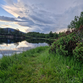 Vi hadde en ordentlig fin tur og var fremme ved Febutjønn ved 18.30 tiden. Planen var å ligge ved Øvre Revsjøen (rett ved), men denne gressletten ved et lite tjern åpenbarte seg, og vi kunne ikke stå i mot. I skumringen var det ufattelig mye vak, men det var ikke en fisk som var interesserte i å bite, helt som normalt med andre ord. Myggen derimot var veldig ivrig etter å bite, så vi var glade for å ha med Thermacell begge to. Da ble det faktisk levelig! Det kom noen drypp i løpet av kvelden og litt torden, men ikke noe voldsomme greier.