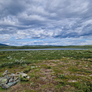 Dag 2 våknet vi til nok en dag med knallsol, men vi visste at det ikke kom til å vare. Vi startet med å gå mot Vestmjøs hvor vi tok en lunsjpause. Det hadde startet å blåse ganske bra da, så vi skrinla rimelig raskt å sette oss ned ved vannet. I stedet fant vi en bekk og fylte opp vann og satte oss litt lenger opp, bak/nedi mellom noen steiner. Vi satt der en liten stund før vi startet på stigningen opp mot Storkvolvbu. Dette er en selvbetjent DNT hytte. Vi visste at de hadde proviantlager der, så vi stakk innom for å se hva de hadde. Innen vi kom oss derfra ble det fryktelig folksomt der med både nordmenn og tyskere, og vi priset oss lykkelige over at ikke vi skulle sove der. Det hadde også begynt å blåse opp skikkelig og det var mørkt skydekke. Vi krabbet oss videre oppover lia mot Vietjønnet, men plassen vi hadde tenkt på var utelukket pga været. Det eneste flate stedet rundt vannet så vidt vi kunne se, var opptatt av et annet telt. Så vi bestemte oss for å traske litt tilbake, utenfor sti, mot noen mindre vann vi så ovenfor Storkvolvbu. Etter en times leting, kom vi over en absolutt perle av en plass. Snakk om en liten oase in the middle of nowhere! Og jammen klarnet været opp også, og plutselig var det fullt solskinn igjen, i hvert fall en liten stund. Så startet regnet igjen, og da oppdaget vi det som skulle bli et problem og det som førte til at vi måtte avbryte turen. Plutselig så vi at begge våre telt lakk! Det seiv inn vann ved alle fester, ennå teltene våre er sømforseglet. Vi kjøpte disse teltene tidligere i år, nye Tarptent Moment DW og betalte ekstra for å få de sømforseglet, men tydeligvis ikke bra nok. Regnet var ikke så voldsomt, så det gikk relativt bra denne natten.