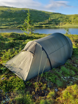 ogjen ble det en etappe med mye bratte stigninger og det ble en tung dag for meg. Slet veldig med en skulder og da er det ikke godt med tung sekk. Tungt å passere Fiskeløysingen når det var det som var det opprinnelige målet. Men etter en stund var vi på toppen og startet å gå nedover mot Holmevatn som var det nye målet. Vi gikk et stykke langs vannet og så at det nok en gang begynte å bygge seg opp med mørke skyer. Vi fikk opp teltene og vi hadde nesten dårlig samvittighet for å sette de opp, det var molteblomster overalt. Ikke før vi hadde fått opp teltene kom det et skikkelig tordenvær. Vi var ikke så høye i hatten da, med tanke på at det bare for et par uker siden var 2 søsken som døde i fjellet av lynet. Ingvild kom ned til mitt telt siden jeg lå litt lavere enn henne og tordenværet var rett over oss i halvannen time. Ikke før det var over klarte vi å konsentrere oss om å lage middag.