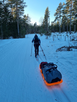 Hva er vel mer naturlig enn å legge ut på tur med ski & pulk når man akkurat har testet positivt for Covid? Ehh, sikkert veldig mye, men det var nå det jeg gjorde. 1.mars 2022 var det "endelig" min tur til å teste positivt, som sistemann i familien. Formen var egentlig helt fin, bare lett forkjølet, så da tenkte jeg at jeg like gjerne kunne rømme til skogs. Ingvild hadde akkurat hatt covid, så hun ville være med og hun ville gjøre et forsøk på å gå på ski fra Landfalltjern og nesten hjem til Vikersund på ski.