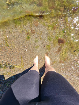 Jeg gikk ned til hovedveien og helt ned til Berger og Bergerbukta. Målet var nådd og turen ble på 21,69 km for å være nøyaktig. I mens jeg ventet på å bli hentet, dyppet jeg slitne tær i vannet.