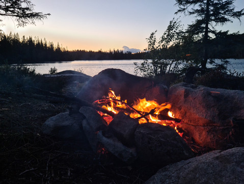 På lørdag fikk vi lettere vær med mye sol og lite vind. Etter frokost pakket vi sammen leiren for å vende nesen mot Lårvika, et annet vann jeg har hatt som mål lenge. I luftlinje ikke særlig langt, men jammen ble det en strabasiøs ferd allikevel. Vi så et fint sted og tenkte så kjekt at vi bare kunne gå nede langs vannet for å komme rundt, og det kunne fungert hadde vi gjort det fra andre kanten. Vi endte opp med en skikkelig klatreetappe hvor vi måtte dra oss opp etter lyngen, men etter mye om og men (og en skikkelig plumping i myra) kom vi frem til målet. Nok en gang gode og slitne, men det er utrolig deilig når man da kan sette seg ned rundt bålet, spise mat, ta seg en kaffe og baileys og bare gjøre ikke noen ting.