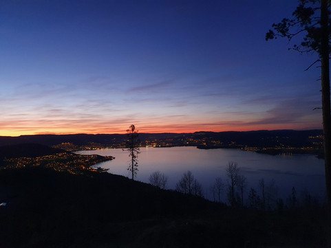 Jeg fikk med meg mannen som sherpa opp til Vardåsen, slik at jeg slapp å bære så tungt opp de bratte bakkene, det var jammen deilig. Vel på fremme på toppen hang jeg opp køya mi og tok plass i min medbragte stol med en kaffe & Baileys (selvfølgelig) for å se på solnedgangen, og for et fantastisk skue. Det ble kanskje litt vel mange bilder av den, men klarte ikke å velge ut noen få. Snakk om å få ro i sjelen av den flotte utsikten.