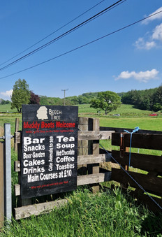 Etter ca 2 1/2 time kom vi frem til Beech Tree Cafe, en cafe som lever av de som går West Highland Way. Vi fikk et bord ute i "bakgården" og koset oss der med deilig mat og drikke. Vi gikk videre og nå begynte det virkelig å bli varmt! Det var folk som badet i bekker og lå i skyggen, vi fikk kjøpt oss en is i en av de mange Honesty boxes som er plassert de første par dagene. Dette er rett og slett kjølebokser, kjøleskap, skur osv som frivillige fyller opp med diverse drikkevarer, bakevarer, kjeks osv, og som man legger igjen penger i en boks. Kort tid etter matpausen vår ble det fort klart at jeg hadde bommet totalt på sokkevalget. Jeg brukte som jeg alltid pleier, tynne merinoullsokker, men med så varmt og hardt underlag, ble det rett og slett for mye friksjon og gnagsår var allerede et faktum. Vi fikk satt oss ned ved en benk og plastret føttene (men skaden var allerede skjedd og jeg kom til å slite med dette helt til slutten) og skiftet til mine Injinji tåsokker som jeg hadde kjøpt med denne turen i bakhodet. Hvorfor jeg ikke startet med disse sokkene, har jeg ikke noe godt svar på.
